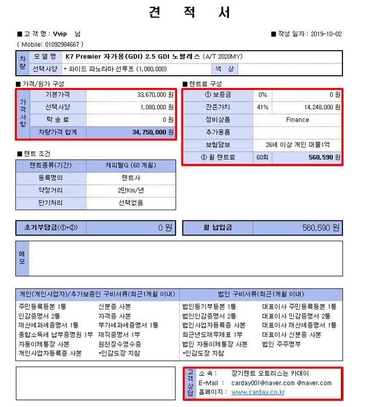 아래 나와있는 내용으로 K7장기렌트 하시게 되었으며, 출고도 되었답니다.